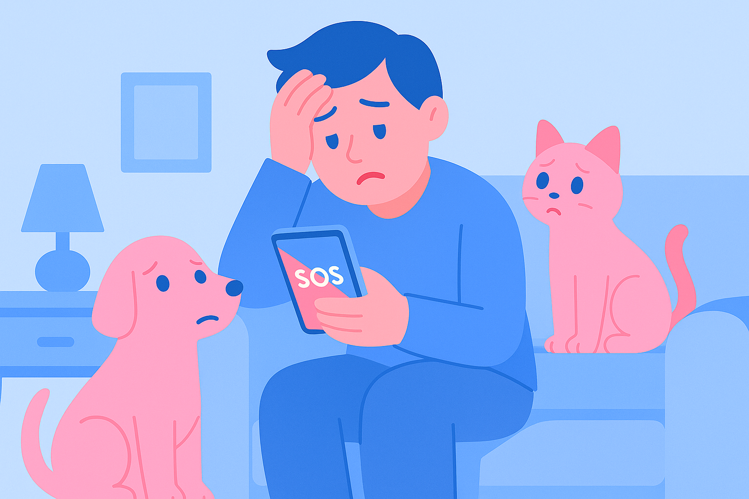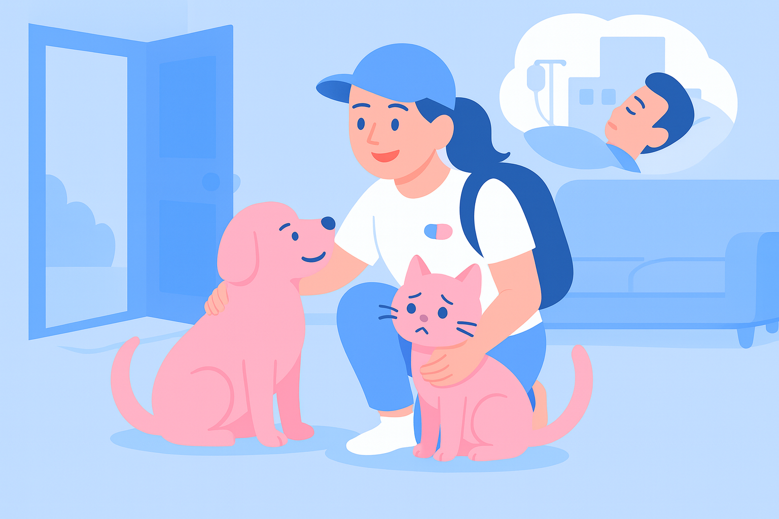 うつ病・パニック障害・適応障害などで、心身の不調により動けない状態になった場合は、速やかに駆けつけます。入院や通院の有無にかかわらず、ペットのお世話が難しい状況であればご利用いただけます。